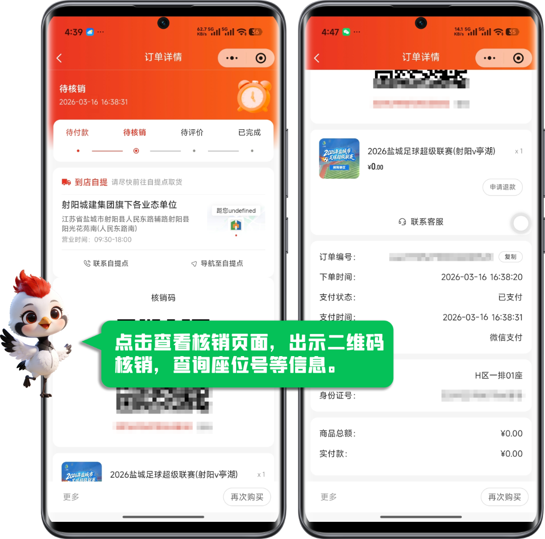 (5)点击订单查看核销页面,出示二维码入场核验。
